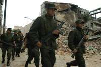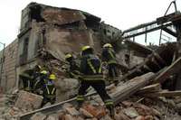 Elementos del Ej�ito mexicano acuden al lugar del derrumbe para acordonar la zona. Abajo, bomberos remueven escombros en busca de posibles v�imas FOTOS Fernando Castillo/ Micphotopress