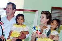 El presidente Vicente Fox y su esposa, Marta Sahag�n la comunidad Santa Cruz, Oaxaca FOTO Notimex/Gustavo Benitez
