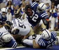 Edgerim James(32) anota touchdown para los Potros de Indian�lis en la segunda parte del partido ante los Carneros de San Luis FOTO Ap