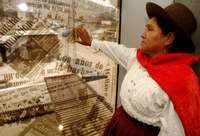 Felicitas Delgadillo, de 54 a� esposa de un desaparecido pol�co en 1986, observa un mural con art�los de prensa sobre el terrorismo de dos d�das en la sierra peruana, durante la inauguraci�n Ayacucho del museo en memoria de miles de v�imas de la violencia FOTO Ap