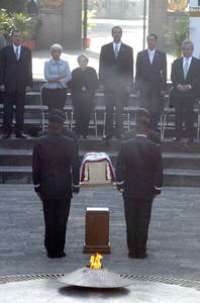 Aspecto de la inhumaci�e los restos de Bernardo Quintana en la Rotonda de las Personas Ilustres FOTO Guillermo Sologuren