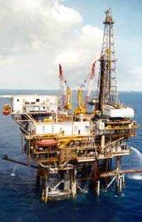Plataforma petrolera de Pemex en Cantarell. Ante la declinaci�roductiva de algunos campos, como Cantarell, con el nuevo r�men fiscal Pemex podr�nvertir en otros campos de reserva ya probados, sostuvo el secretario de Energ�FOTO La Jornada