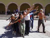 No conozco el teatro de Broadway porque es demasiado caro para m�asegura Peter Schumann. En la imagen, durante su taller de teatro callejero, en Zacatecas FOTO Instituto Zacatecano de Cultura