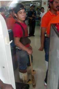 Cancún, QR, 24 de octubre. Los víveres se acabaron y hoy cientos de personas salieron en búsqueda de tiendas de abarrotes o supermercados. Ni Wal-Mart ni Soriana ni Sam's ni Comercial Mexicana abrieron sus puertas. La única tienda disponible fue Chedraui, donde 12 trabajadores armados con bates de beisbol y dos más con rifles recibían a los clientes. ''Es para evitar los saqueos que siguen ocurriendo'', justificó el encargado del almacén, Benito Servín.