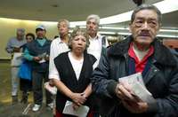 Personas de la tercera edad hacen fila para tramitar la tarjeta de acceso gratuito al Sistema de Transporte Colectivo Metro, en la estaci�ino Su�z FOTO Maria Luisa Severiano