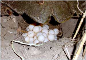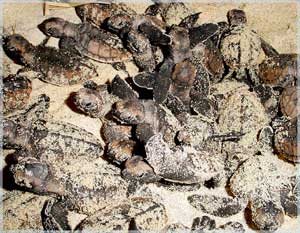 Después de una ardua labor en la construcción del nido, deposita lentamente entre 77 y 230 huevos que crecerán con ayuda del calor generado por esa incubadora natural de arena. En aproximadamente 55 días saldrán cientos de tortuguitas que iniciarán un largo camino hacia el mar; muchas morirán en ese trayecto atacadas por sus depredadores y aun las que logren llegar a la orilla tendrán que luchar dentro del mar para sobrevivir a los ataques de aves, peces y tiburones.