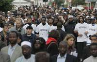 Residentes del barrio Clichy Sous Bois, a las afueras de Par� se manifestaron el pasado fin de semana contra la represi�oliciaca y la muerte de dos adolescentes cuando hu� de la polic� Algunos llevaban playeras con la leyenda "Muertos por nada" FOTO Ap