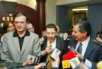 Los precandidatos del PRD a la jefatura de Gobierno del Distrito Federal, Marcelo Ebrard y Jes�tega, se reunieron ayer con los dirigentes nacional y estatal de ese partido, Leonel Cota y Mart�atres, para limar asperezas FOTO Jes�llaseca
