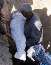 Un familiar sepulta el cuerpo de un ni�uerto durante un ataque estadunidense en Ramadi FOTO Ap