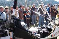 Llano de las Papas, Angangueo, Mich., 3 de noviembre. El gobernador de Michoacán, Lázaro Cárdenas Batel, acudió a este predio para recibir al Papalotzin, el avión ultraligero que sigue el vuelo de la mariposa monarca desde Canadá.