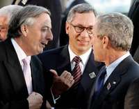 Los presidentes N�or Kirchner, de Argentina; Eduardo Rodr�ez, de Bolivia, y George W. Bush, de Estados Unidos, durante la cuarta Cumbre de las Am�cas, en Mar del Plata FOTO Reuters