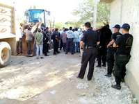 Con la colocación de piedras en el camino de terracería y sus propios cuerpos, los vecinos inconformes -que recientemente conformaron la asociación civil ¡Ya Basta!, adhiriéndose a la Sexta Declaración de la Selva Lacandona-, evitaron que ingresaran a la mina cinco camiones, un tráiler y una máquina buldózer, con las que personal de la compañía Rivera y Rivera pretendía continuar con el acarreo de material pétreo utilizado en la construcción de la autopista Zacatecas-San Luis Potosí.