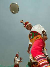 Los pueblos indios son productores y depositarios de una parte del patrimonio intangible de M�co. En la imagen, voladores de Papantla en la segunda secci�el bosque de Chapultepec FOTO Jos�arlo Gonz�z