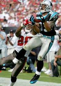 El receptor Steve Smith, de Panteras de Carolina, captura un pase de touchdown de Jake Delhomme FOTO Reuters