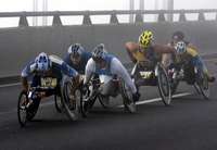 Nueva York, 6 de noviembre. El medallista paralímpico mexicano Aarón Gordián (1:31.28 horas) se adjudicó el segundo sitio en la edición 36 del maratón internacional de Nueva York, en la prueba de silla sobre ruedas que ganó el sudafricano Ernst Van Dyk con nueva marca del certamen (1:31.11).
