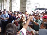 Mérida, Yuc., 6 de noviembre. Alrededor de cien campesinos mayas de la comunidad de Oxcum, municipio de Umán, armados con palos y machetes, impidieron esta madrugada que empleados del especulador inmobiliario Antonino Almazán Arteaga -contratado por el gobierno estatal para comprar tierras a precios muy bajos- ingresaran con maquinaria pesada a terrenos para comenzar el proceso de desmonte de inmuebles donde se pre-tende construir el nuevo aeropuerto de Mérida.