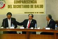 El� Miguel Moreno, presidente de la Comisi�e Salud del Senado; Julio Frenk, y Jos�dalberto Castro Castro, durante la comparecencia del titular de la Ssa ante legisladores FOTO Jes�llaseca