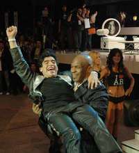 Tyson se divirtió y hasta alzó a Maradona en brazos. Además anunció su retiro definitivo, todo ante las siempre amigables preguntas del ex capitán del equipo campeón del mundo en México-86, más mordaz como entrevistado que como entrevistador.