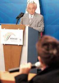 Aguilar Valenzuela se refirió también, a pregunta expresa, a las críticas que lanzó la Cámara de Senadores acerca de la desafortunada participación del presidente Vicente Fox en la cuarta Cumbre de las Américas, realizada el pasado fin de semana en Mar del Plata. "Respetamos muchísimo la opinión del Senado; no la compartimos, seguimos considerando que fue una muy buena reunión, que atrajo muy buenos resultados para la política exterior mexicana".