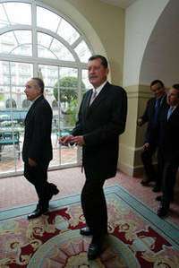 Los legisladores pri�as Heliodoro D� Esc�aga y Enrique Jackson Ram�z, durante la reuni�e ayer en un hotel capitalino FOTO Jes�llaseca