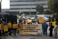 Protesta de promotores del voto en el extranjero de Andr�Manuel L� Obrador protestaron frente a las instalaciones del IFE, por considerar que no hacen lo suficiente para promocionar el sufragio fuera del pa�FOTO Jos� Antonio L�