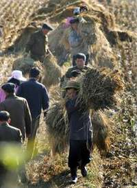 Con el arroz gen�camente modificado se busca proteger de la codicia extranjera a esa gram�a. En la imagen, campesinos norcoreanos trabajan en un campo de arroz FOTO Reuters