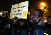 Un inmigrante muestra en Saint-Michel un cartel que dice "todos somos escoria", calificaci�ue us� ministro del Interior Nicolas Sarkozy FOTO Ap