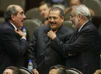 Los diputados Pablo G�, del PRD; Manlio Fabio Beltrones y Carlos Jim�z Mac�, del PRI, durante la sesi�n que se aprob� Presupuesto de Egresos de la Federaci�006 FOTO Francisco Olvera