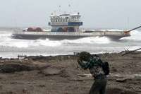 Los fuertes vientos de ayer hicieron encallar una barcaza frente a El Conchal, en el puerto de Alvarado, Veracruz FOTO Horacio Zamora