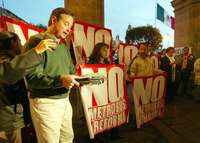 Vecinos de Las Lomas de Chapultepec se manifestaron ayer frente al edificio del antiguo Ayuntamiento, en el Z�o, en contra de "la construcci�del Reformab�TO Guillermo Sologuren