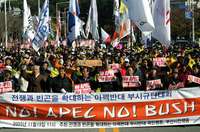 En las calles de Busan, Corea del Sur, manifestantes protestan contra el presidente estadunidense George W. Bush y las pol�cas del APEC FOTO Ap