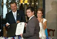 Al dirigirse a los ganadores del PND: la velocista Ana Guevara, el técnico Javier Aguirre, el clavadista Rommel Pacheco, el beisbolista Jorge Cantú, la Sub- 17 y su entrenador Jesús Ramírez, así como el empresario Alfredo Harp Helú, a quienes calificó de "líderes'' en sus respectivas áreas, Fox mencionó: