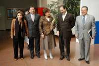 Los senadores Yolanda Eugenia Gonz�z, Joaqu�Cisneros y Noem�uzm� el secretario de la Funci��a, Eduardo Romero Ramos, y Jorge Eduardo Franco. Ayer, los legisladores pri�as ratificaron las denuncias sobre irregularidades detectadas en el manejo del Fonden FOTO Cristina Rodr�ez