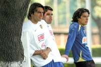 El Piojo L�, Pardo y Ochoa, durante la pr�ica en el club de Coapa FOTO Notimex