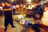Peritos revisan el lugar donde un comando asesin�cuatro personas, en la plazoleta de La Quebrada FOTO Javier Verdin