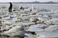 Un experto examina el congelado y contaminado r�Sungari, que amenaza a chinos y rusos FOTO Ap