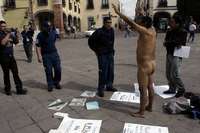 Querétaro, Qro., 25 de noviembre. A casi un año de la muerte de Marco Antonio Hernández Galván, presuntamente asesinado por Federico Ruiz, hijo de un prominente empresario local, intelectuales se manifestaron frente al palacio de gobierno para exigir que se resuelva este caso. Ahí el escritor Julio Figueroa se desnudó totalmente.