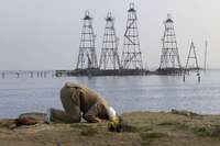Un isl�co reza cerca de pozos petroleros de Baku, Azerbaiy�FOTO Ap