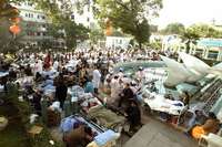 Un hospital de la provincia de Jiujiang, China, se vio rebasado para brindar apoyo a los afectados por el sismo, por lo que tuvieron que ser atendidos "al aire libre" FOTO Reuters