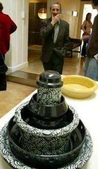 Al mediodía de ayer, en la Galería Mexicana de Diseño, Vicente Rojo inauguró una exposición y venta de 30 piezas y juegos de piezas en talavera a cuyo valor estético se agrega, además, una función utilitaria en la vida cotidiana.