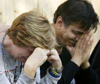 Cindy Sheehan, acompa� de Juan Torres, oran por la paz a las puertas del rancho de George W. Bush en Crawford, Texas, ayer. La activista, madre de un soldado muerto en combate en Irak, instal� campamento en el lugar desde el verano pasado para exigir al gobierno el regreso de las tropas estadunidenses FOTO Reuters