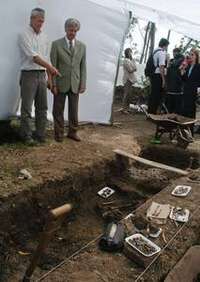 En el último día de trabajo en una granja privada, los antropólogos encontraron el martes a 50 centímetros bajo tierra los pies, piernas y el fémur con articulación de una persona, luego de cavar 250 fosas en los tres meses pasados.