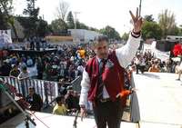 Jes�tega Mart�z, aspirante a la candidatura del PRD a la jefatura de Gobierno del Distrito Federal, cerr�er su precampa�n las instalaciones del IPN en el Casco de Santo Tom�FOTO Guillermo Sologuren