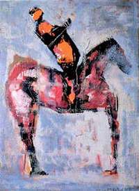 Obras pertenecientes a un periodo posterior a la Segunda Guerra Mundial representan a jinetes exhaustos, abrumados por el vigor de sus caballos, ejecutados en formas crudas con líneas rotas y bordes afilados.