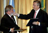 Buenos Aires, 30 de noviembre. En un momento político clave en que los cambios realizados por Néstor Kirchner en su gabinete marcan la decisión de dar un vuelco en la situación social, el presidente argentino suscribió hoy nuevos acuerdos con su par Luiz Inacio Lula da Silva, de Brasil, para fortalecer el Mercado Común del Sur (Mercosur) con la firma de la Declaración de Iguazú, que incrementará la cooperación en áreas estratégicas y fortalecerá los vínculos entre ambos países.