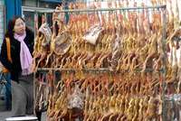 Una mujer mira decenas de pollos que ser�cocinados en un restaurante de la provincia china de Henan. El gobierno de Pek�anunci�e suavizar�a cuarentena decretada por los casos de gripe aviar detectados en el pa�FOTO Reuters