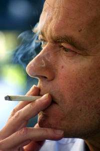 La entrevista es en el restaurante del hotel en el que se hospeda, donde uno tras otro enciende cigarrillos liados por él mismo, pero con un pequeño truco: utiliza el filtro de otros de marca conocida.