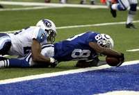 Marvin Harrison (derecha), de Indian�lis, se convirti� el duod�mo receptor en alcanzar 12 mil yardas FOTO Ap