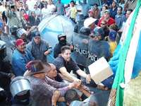 Jerez, Zacatecas, 5 de diciembre. Decenas de simpatizantes del alcalde panista Andrés Bermúdez Viramontes, El Rey del Tomate, respaldados por policías antimotines, desalojaron este lunes a unas 30 personas que mantuvieron en su poder la presidencia municipal desde la noche del viernes pasado. Según versiones no oficiales, durante la acción fueron detenidas al menos seis personas.