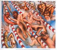 Nadadores, 1996, � de Nicole Eisenman, pintora estadunidense que confrontar�u propuesta "antimachista e irreverente" con "obras machistas de los muralistas mexicanos" FOTO Cortes�Museo de Arte Carrillo Gil